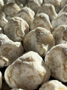 Offrir à chacun le bonheur de retrouver les vrais goûts d’antan, ceux qui réchauffent le cœur et rappellent les fêtes en famille. Chaque biscuit est préparé avec soin, sans artifices, juste avec des ingrédients de qualité et beaucoup d’amour.